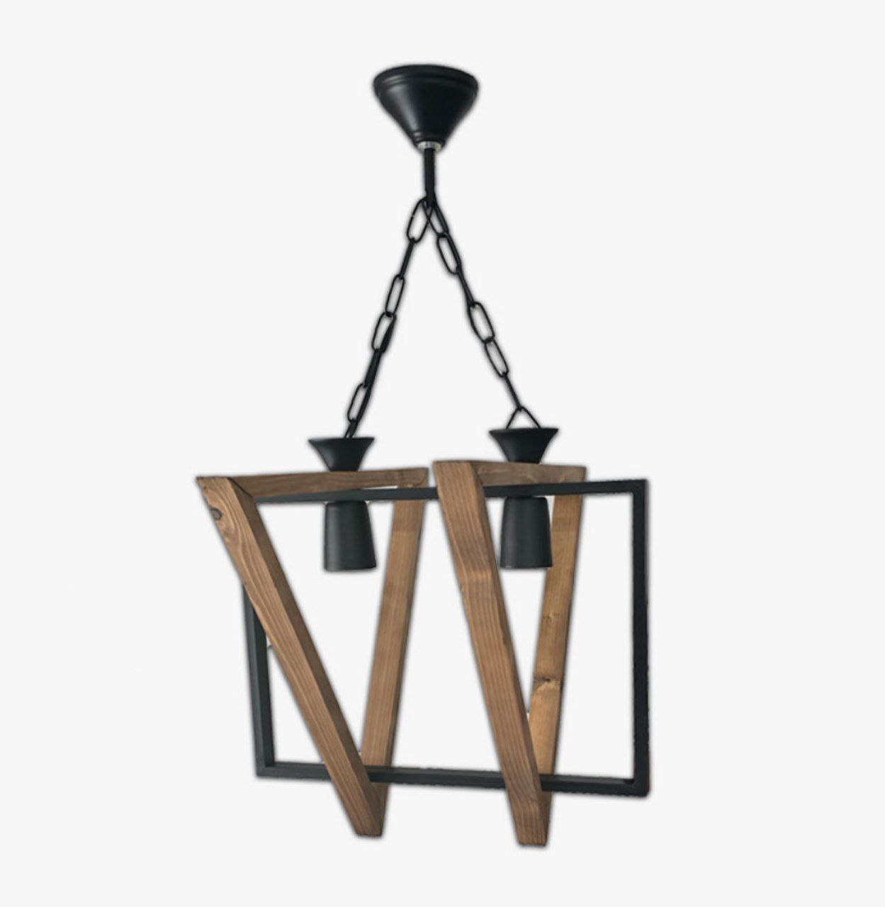 خانه انواع اویز و لوستر اویز دو شعله چوب فلز مثلث
